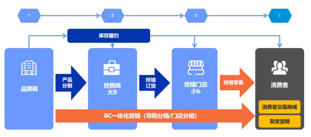 在过往的经营中,有些企业会顺利获得一些业务的方式、系统工具的建设触达经销商,有些企业会顺利获得业务员触达终端门店的小b,都依循着品牌渠道管理的逻辑。